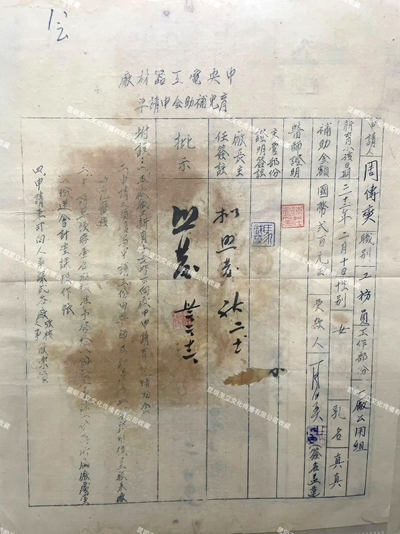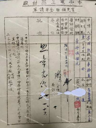 ▲1943年10月中央電工器材廠(昆明電纜集團前身)發放職工育兒補助國幣300元。