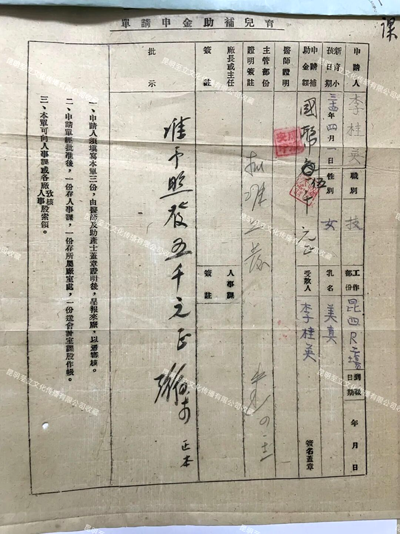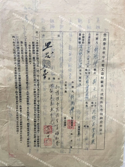 ▲1942年9月,中央電工器材廠(昆明電纜集團前身)發放職工育兒補助國幣200元。